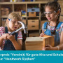 Der Förderpreis „Verein(t) für gute Kita und Schule“ ist ein gemeinsamer Preis für das bundesweite Bildungsengagement von den Landesverbänden der Kita- und Schulfördervereine, dem Bundesverband der Kita- und Schulfördervereine e.V. (BSFV) und der Stiftung Bildung. Dieses Jahr wurden Projekte zum Thema „Handwerk l(i)eben“ gesucht. Eine Jury aus unabhängigen Expert*innen verleiht drei Projekten einen Geldpreis von jeweils 5.000 Euro. Zusätzlich wird ein Publikumspreis vergeben.